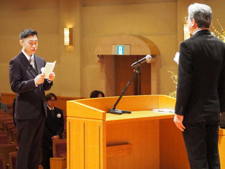 式典の最後に、卒業生を代表して、自動車整備科2期生の 星野 颯太(ほしのそうた)さんが挨拶を行いました。