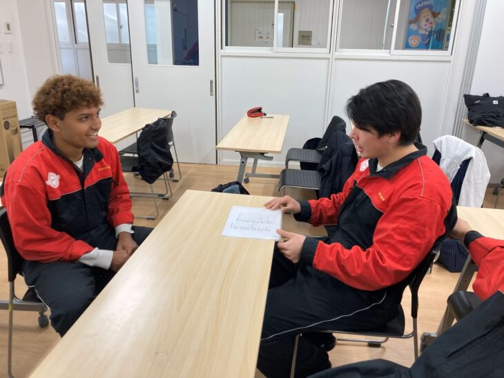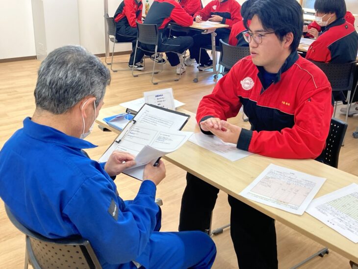 二人一組になって、ロールプレイング。店内へ誘導中。